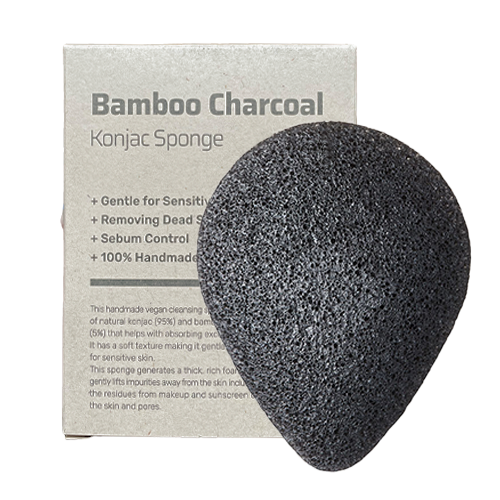 A handmade vegan Konjac sponge made from 95% natural Konjac and 5% Bamboo Charcoal to help absorb sebum and gently exfoliate your skin when cleansing.