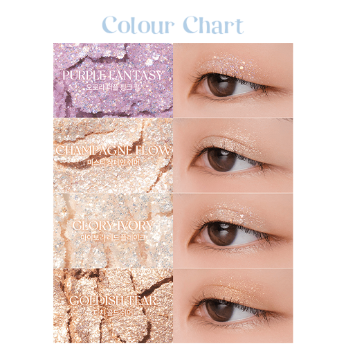 In here, you’ll find Romand’s expert mix of fine peal shadows, creamy shimmers and chunky glitter balms to create a 3-dimensional look.
