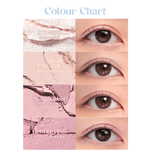In this palette, you’ll find romand’s expert mix of glitter textures, and a selection of soft buttery matte shades to create a multidimensional look.