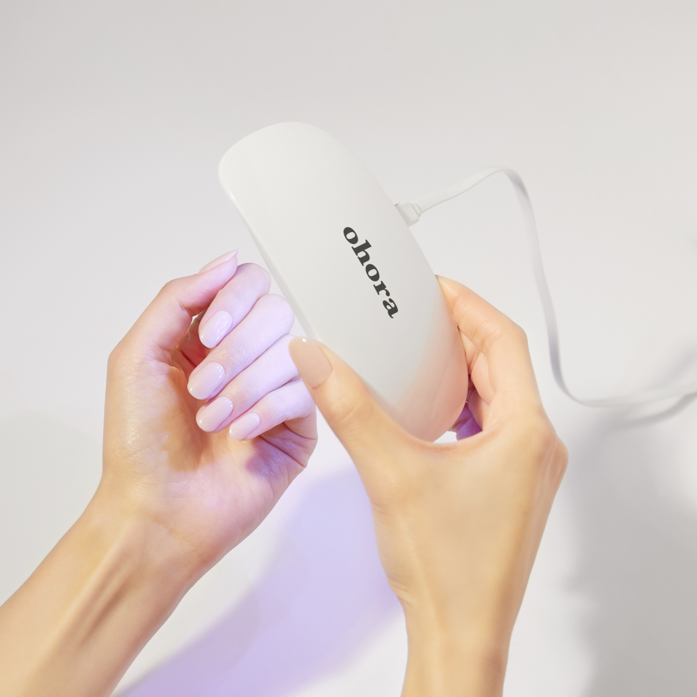 This compact USB gel nail lamp uses modern nail care technology, boasting a powerful combination of professional-grade 6W UV and LED lights designed for the quick and safe curing of gel manicures and pedicures. It hardens Ohora‘s semi-cured gel nail strips with a stunning high-quality finish, setting them firmly in place, and ensuring budge-proof, smudge-proof, and impeccably glossy nails for at least two weeks.