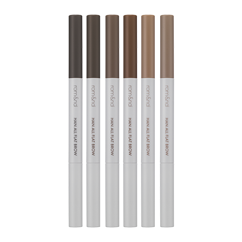 The Han All Flat Brow from viral K-Beauty brand rom&nd is a range of creamy tapered Korean eyebrow pencils with a super-easy roll-up mechanism – no need for sharpeners here!